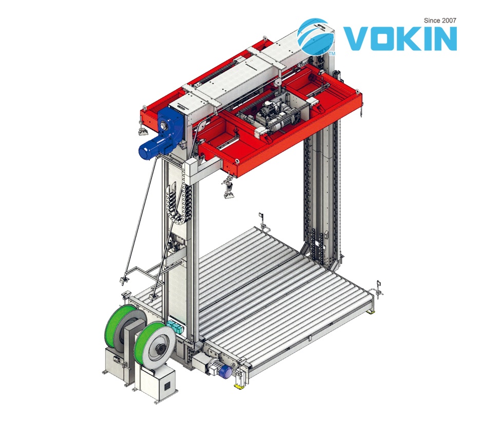PS系列适用瓦楞行业,平板纸,纸箱和各种码垛型产品。其配置特殊动力加压压板通过多股链条传动下压。下压压力可以通过拉力传感器感应和设置(最大到5吨),大尺寸压板确保不同类型和尺寸的产品受到足够的下压力后,再打带捆包,确保最佳的捆扎效果和紧度。双机头机型配置2个机头和标准穿箭机构外,还可以配置特殊的穿箭带槽和底部固定带槽,能应用客户的带托盘或无托盘的产品。