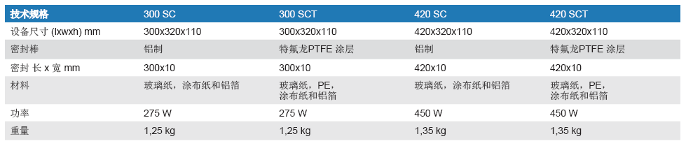 (300SC和420SC)还有特氟龙PTFE涂层的密封棒选项(300 SCT和420 SCT)