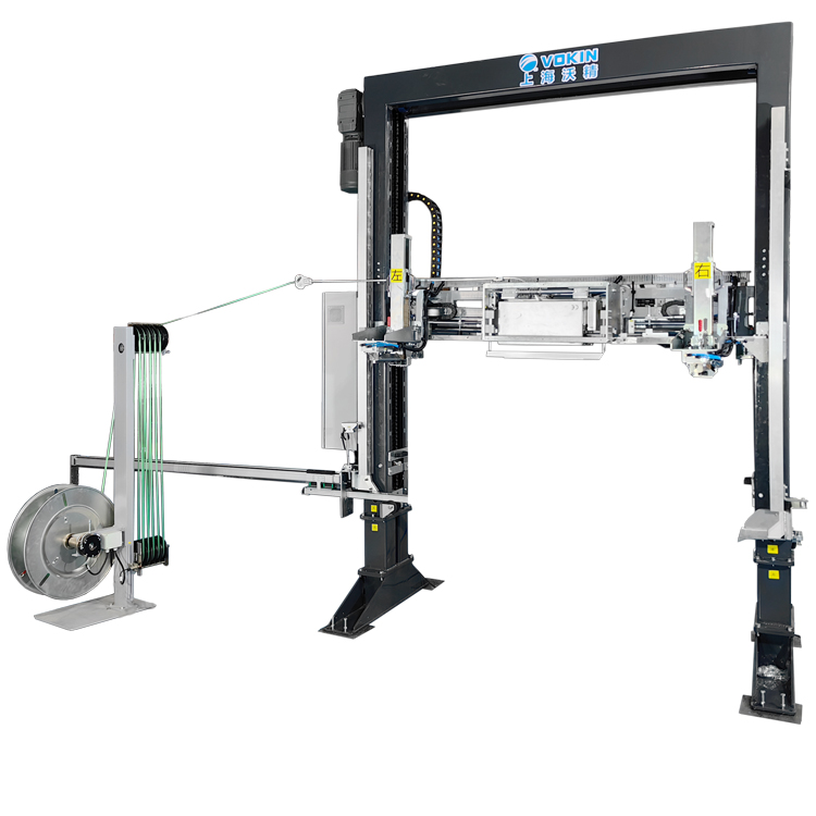 VK-1TL-DHJ 是一款多功能性,可扩展的全自动垂直穿箭式打带机加短护角,适合于高强度,高要求的打包带的应用,