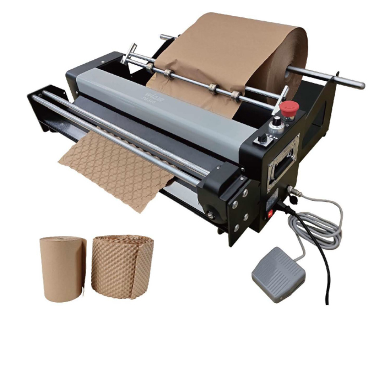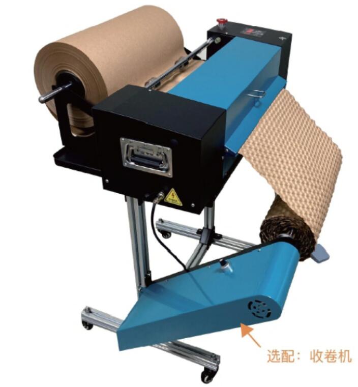 此款机器可制作宽幅500mm的压泡纸,机器可自由调速,配置脚踏开关,可自由控制出纸长度,适合小型仓库,生产线等场所
